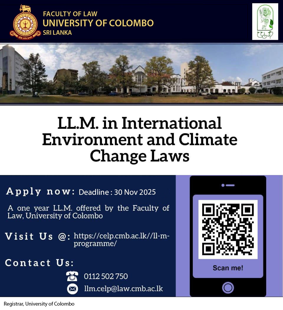 With the aim of addressing this setback, the Faculty of Law and CELP of the University of Colombo, Sri Lanka will be jointly offering a postgraduate course on Master of Laws in International Environment and Climate Change Law.